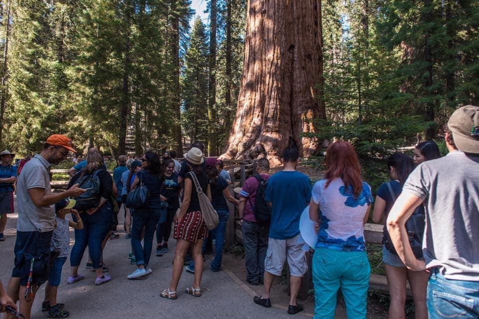 Z Yosemitů jsme zamířili do Sequoia National Parku. Nemohli jsme nějakou dobu najít turisty. Říkali jsme si, že to přece není možné, že by tady nebyli. Pak jsme je objevili u jedné ze sekvojí. Údajně největší sekvoj světa. Všichni návštěvníci stáli frontu na fotku, aby si zašaškovali u General Sherman Tree na deset vteřin.